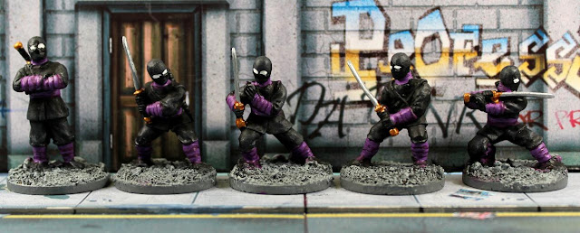 My plan to use these figures is to include them as part of Shredder's villainous gang in 7TV2e. There are stats for ninjas in 7TV2e, but I agree with Andy when he was creating stats for his TMNT figures that these should actually be classed as Minions. They are not that good in combat and tend to get mown down in vast numbers without doing much damage to the vastly superior Turtles.